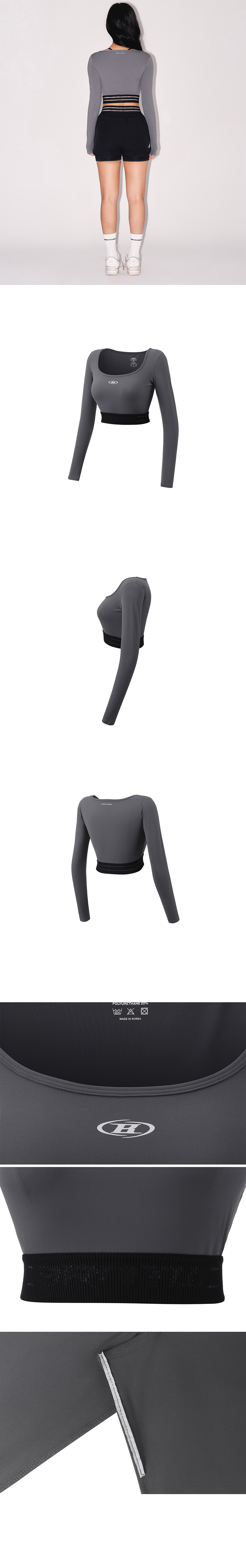 BORN TO WIN W Reflective Out Band Crop Long Sleeve Charcoal