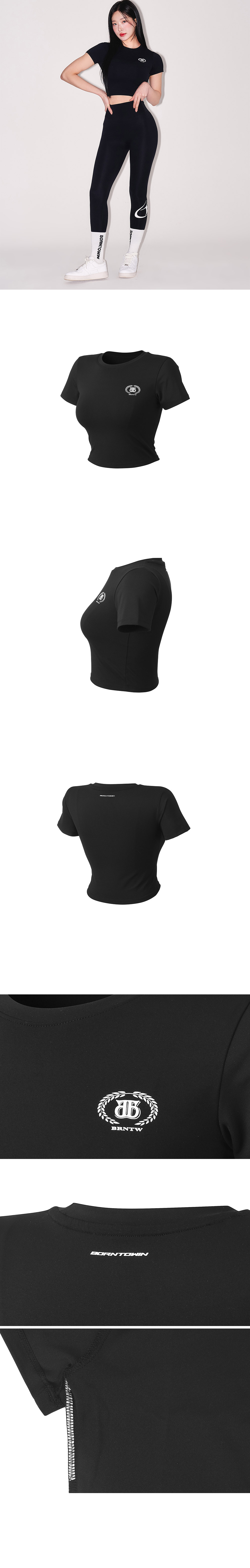 본투윈 우먼스 퀵드라이 엠블럼 세미크롭 블랙