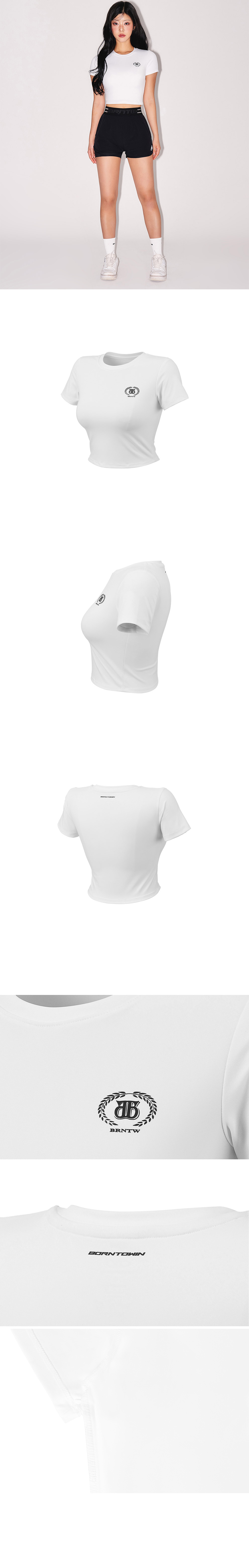 BORN TO WIN W Quick Dry Emblem Semi Crop T-Shirts White