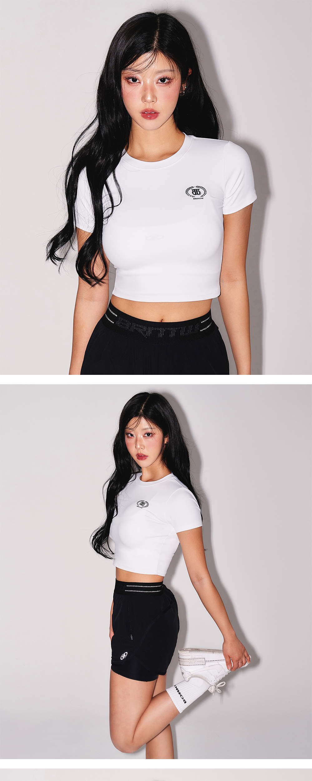 본투윈 우먼스 퀵드라이 엠블럼 세미크롭 티셔츠 화이트