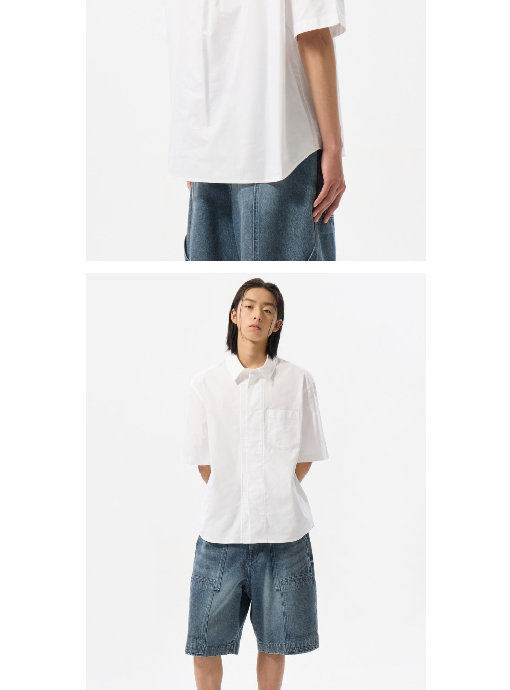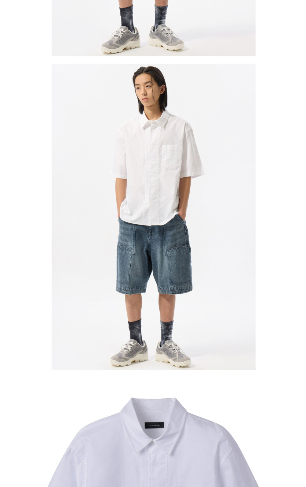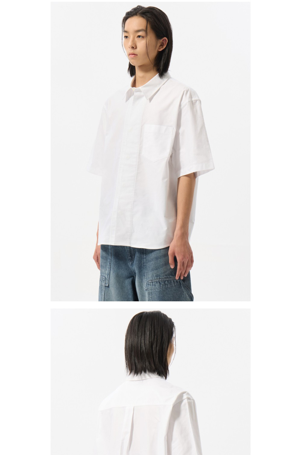 커스텀멜로우 히든 버튼 옥스포드 하프 셔츠 화이트