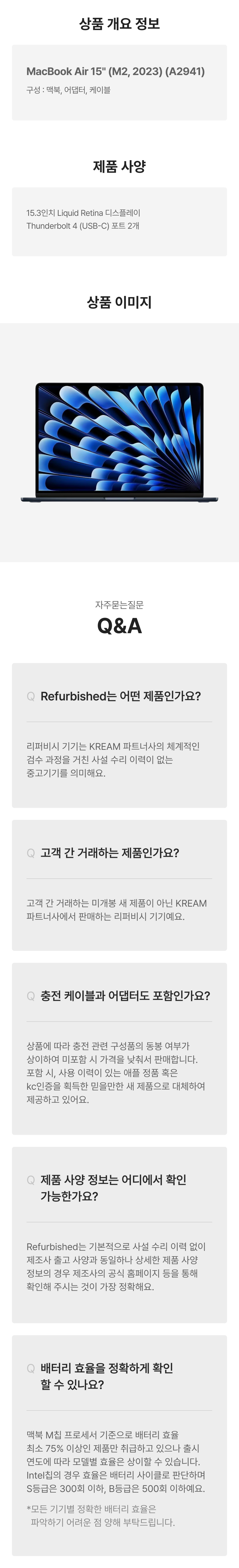 [S등급] 리퍼비시 2023 맥북 에어 15 M2 8c 256기가 SSD 8기가 램 스페이스블랙