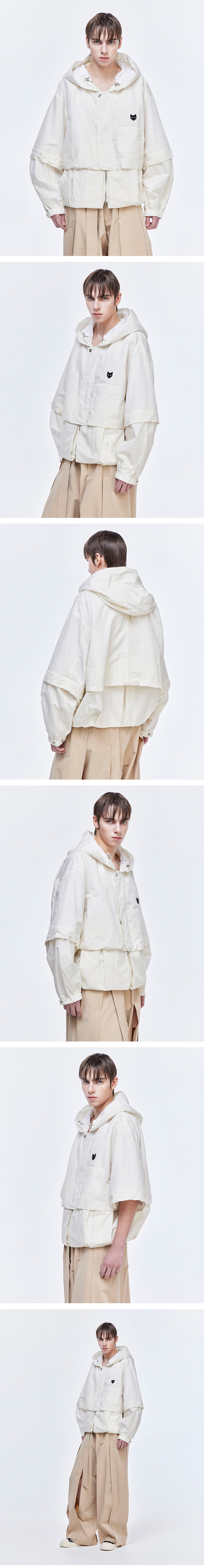 송지오 지제로 슬리브 디터쳐블 후드 점퍼 크림
