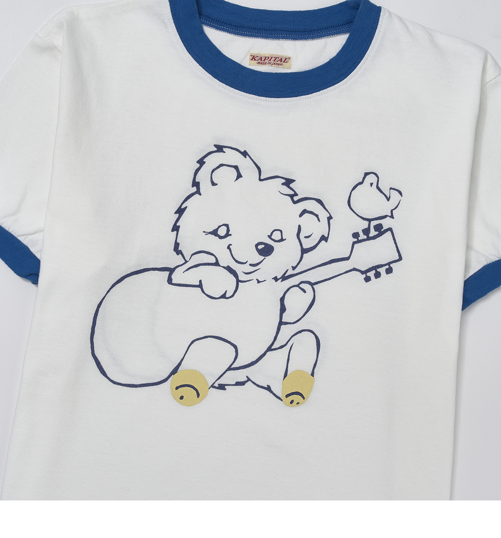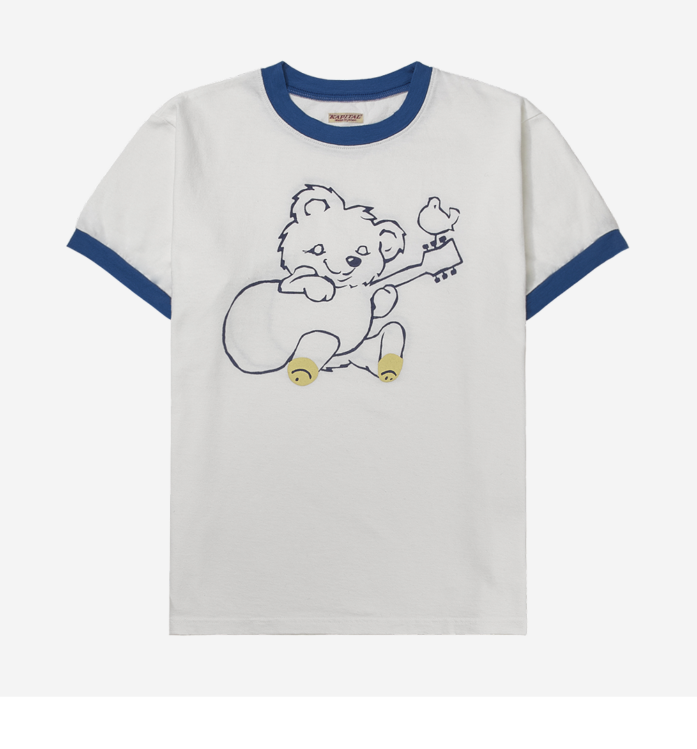 Kapital 20 Tenjiku Ringer T-Shirt Little Bear & Harmony Pt Blue