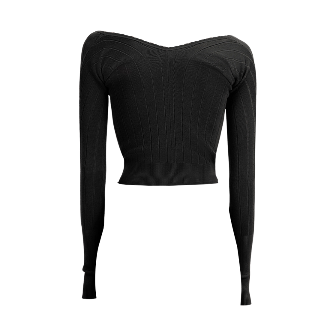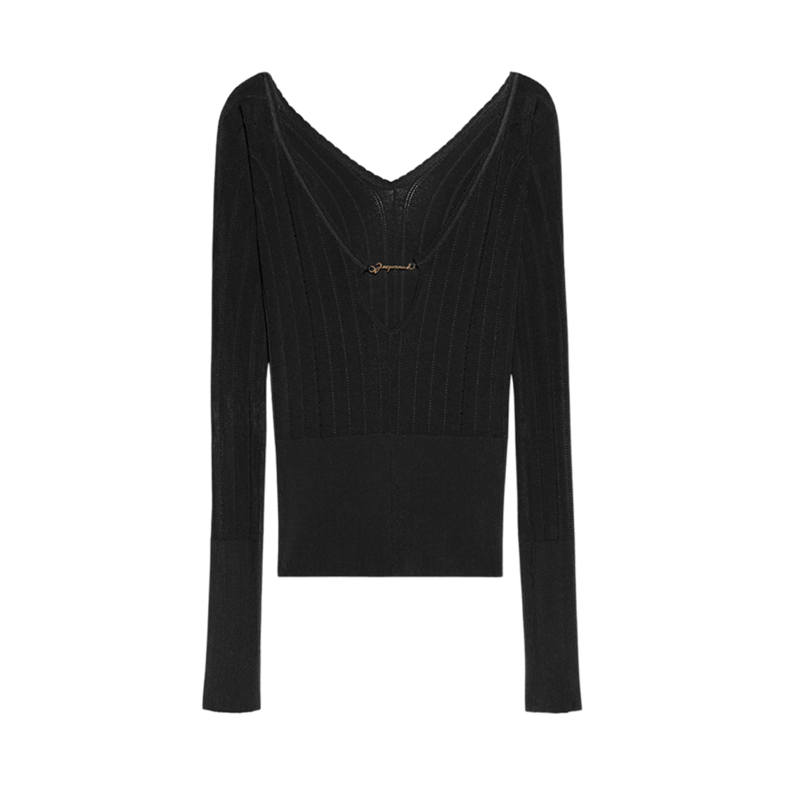 (W) Jacquemus Pralu Long Sleeve Scalloped Top Black