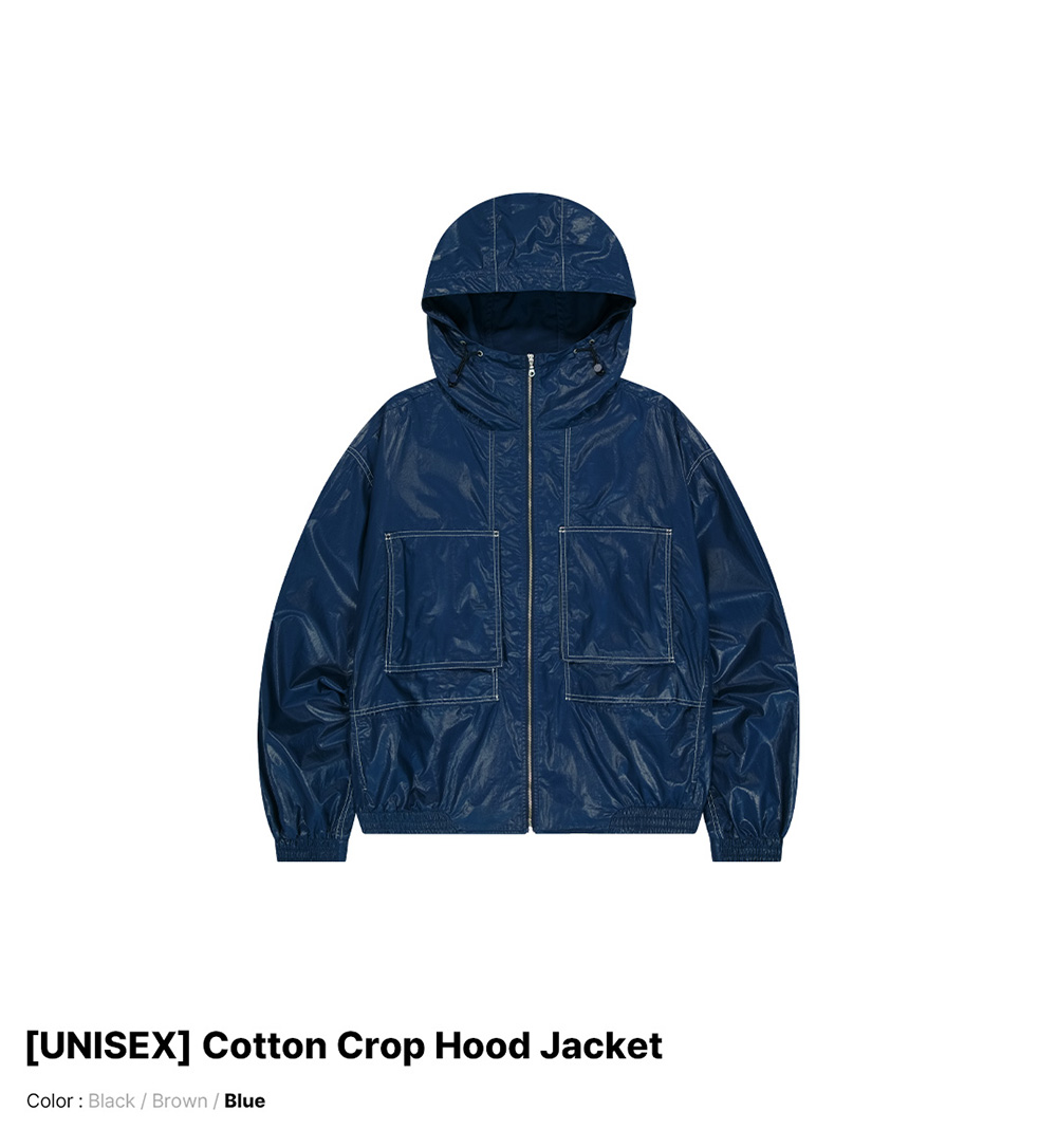 오프그리드 코튼 크롭 후드 자켓 블루