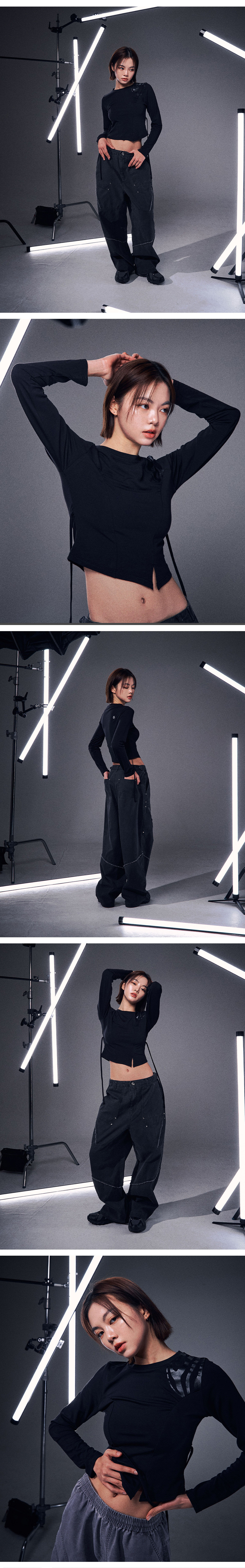 오프그리드 셔링 크롭 롱 슬리브 티셔츠 블랙