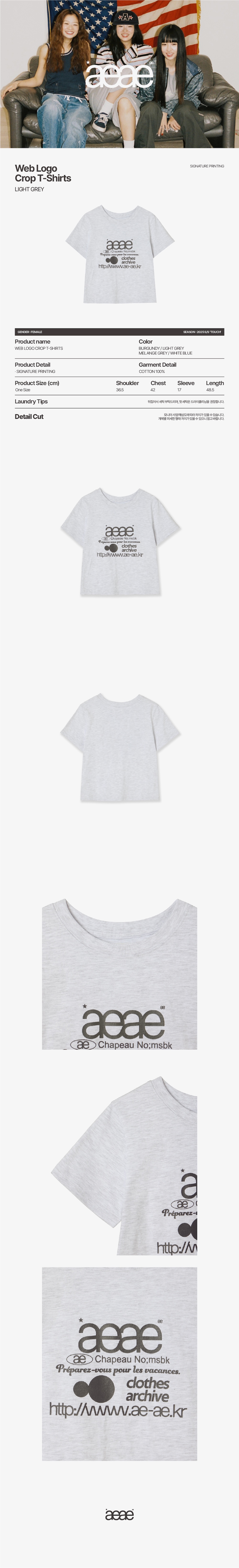 에이이에이이 웹 로고 크롭 티셔츠 라이트 그레이