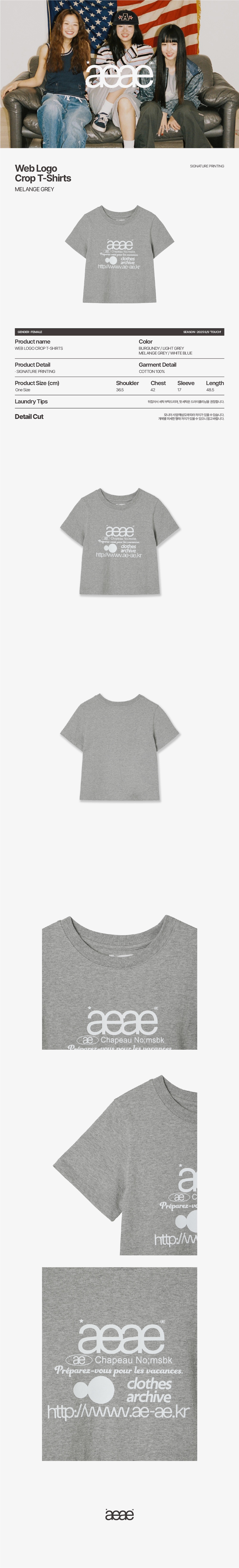 에이이에이이 웹 로고 크롭 티셔츠 멜란지 그레이