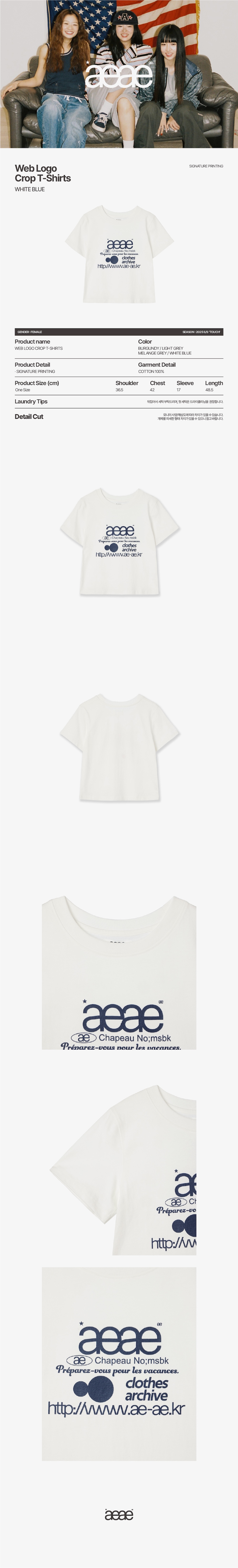 [예약 배송] 에이이에이이 웹 로고 크롭 티셔츠 화이트 & 블루