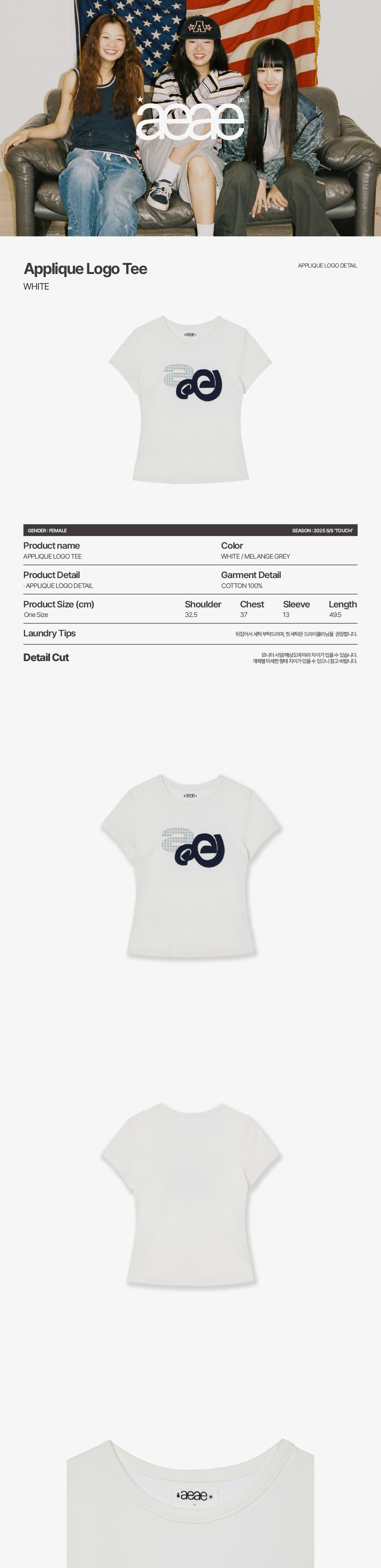 에이이에이이 아플리케 로고 티 화이트