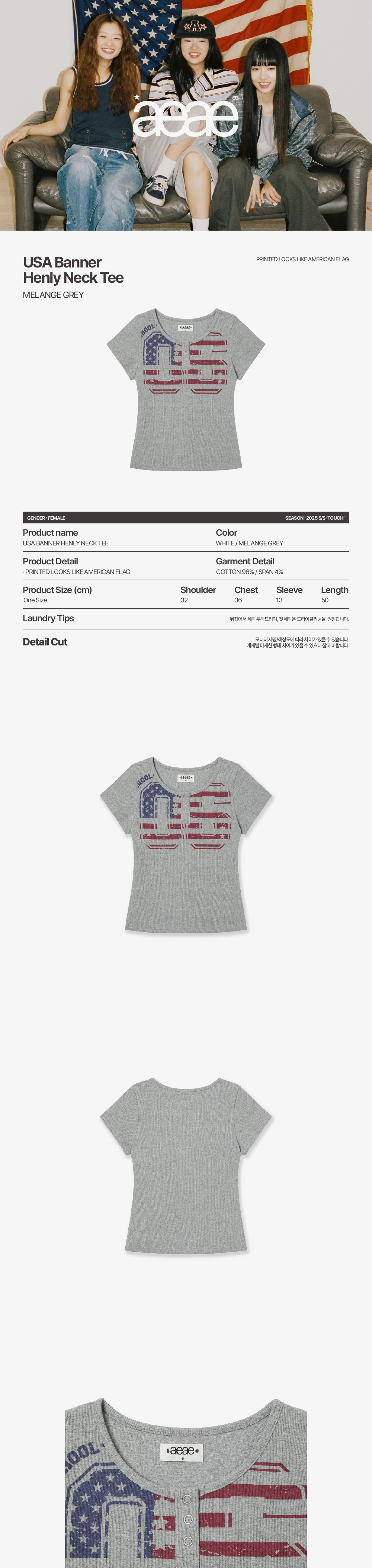 에이이에이이 유에스에이 배너 헨리넥 티 멜란지 그레이