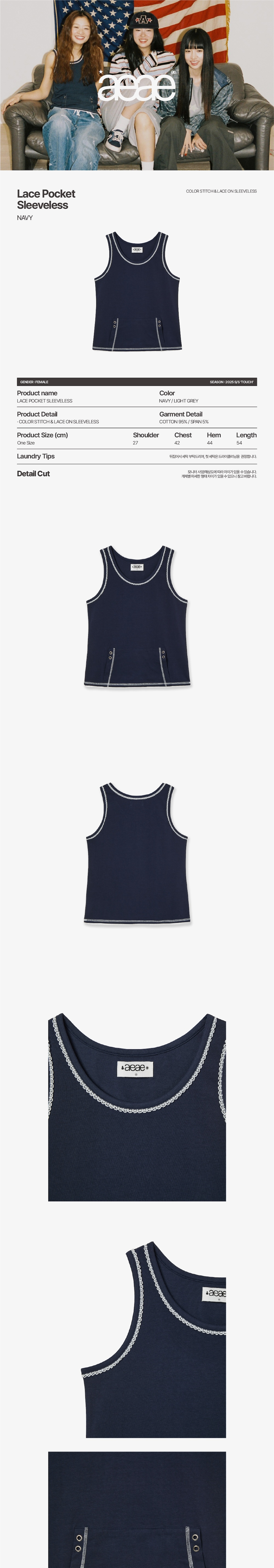 에이이에이이 레이스 포켓 슬리브리스 네이비