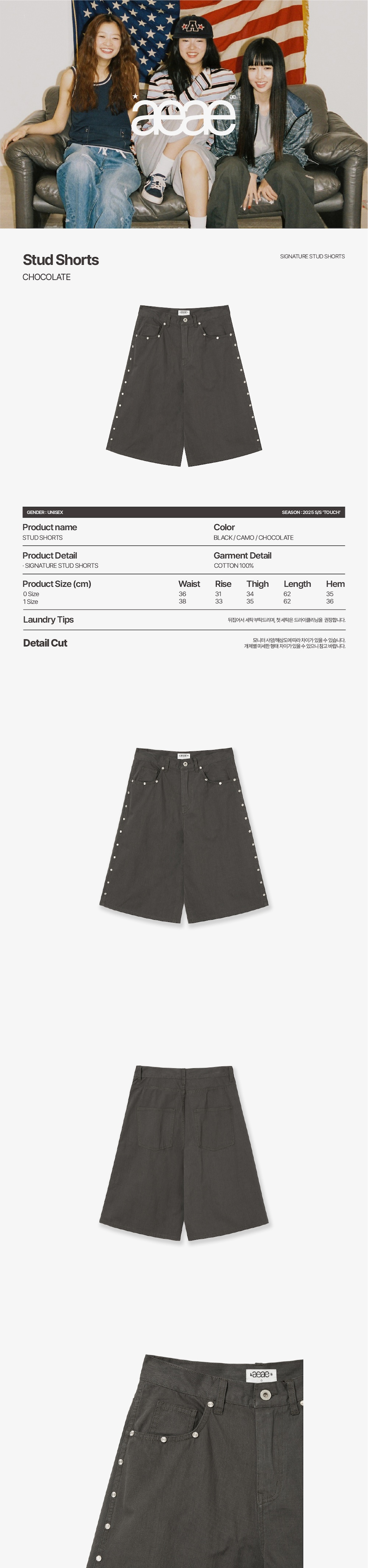 에이이에이이 스터드 쇼츠 초콜렛