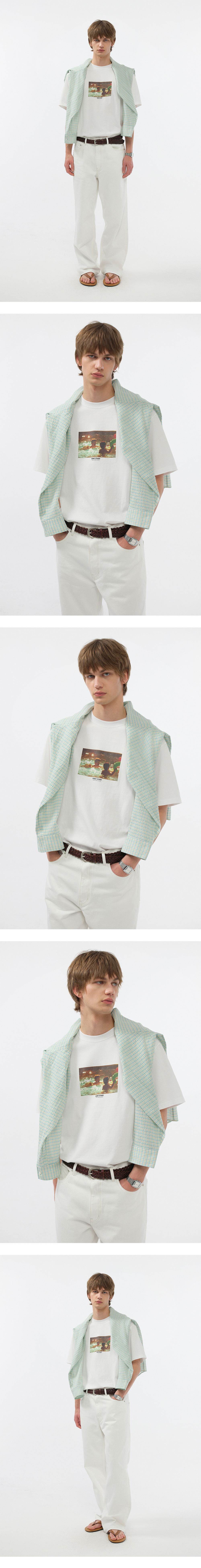 던스트 유니섹스 차일드후드 포토 티셔츠 오프 화이트/풀 민트