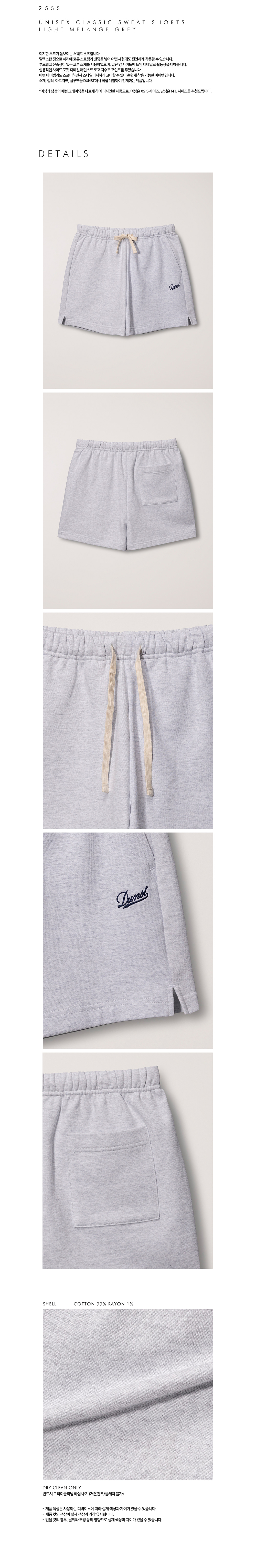 던스트 유니섹스 클래식 스웻 쇼츠 라이트 멜란지 그레이