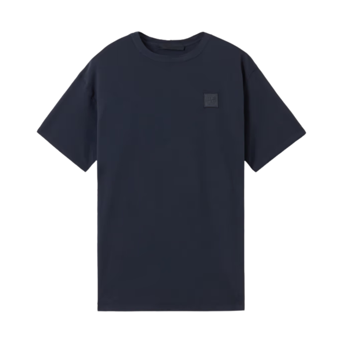 스톤 아일랜드 2100008 크레이프 코튼 저지 고스트 로고 패치 슬림 핏 티셔츠 네이비 블루 - 25SS