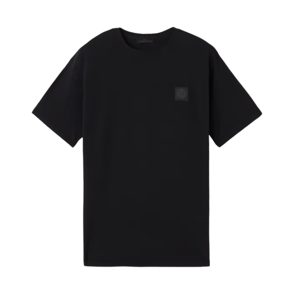스톤 아일랜드 2100008 크레이프 코튼 저지 고스트 로고 패치 슬림 핏 티셔츠 블랙 - 25SS