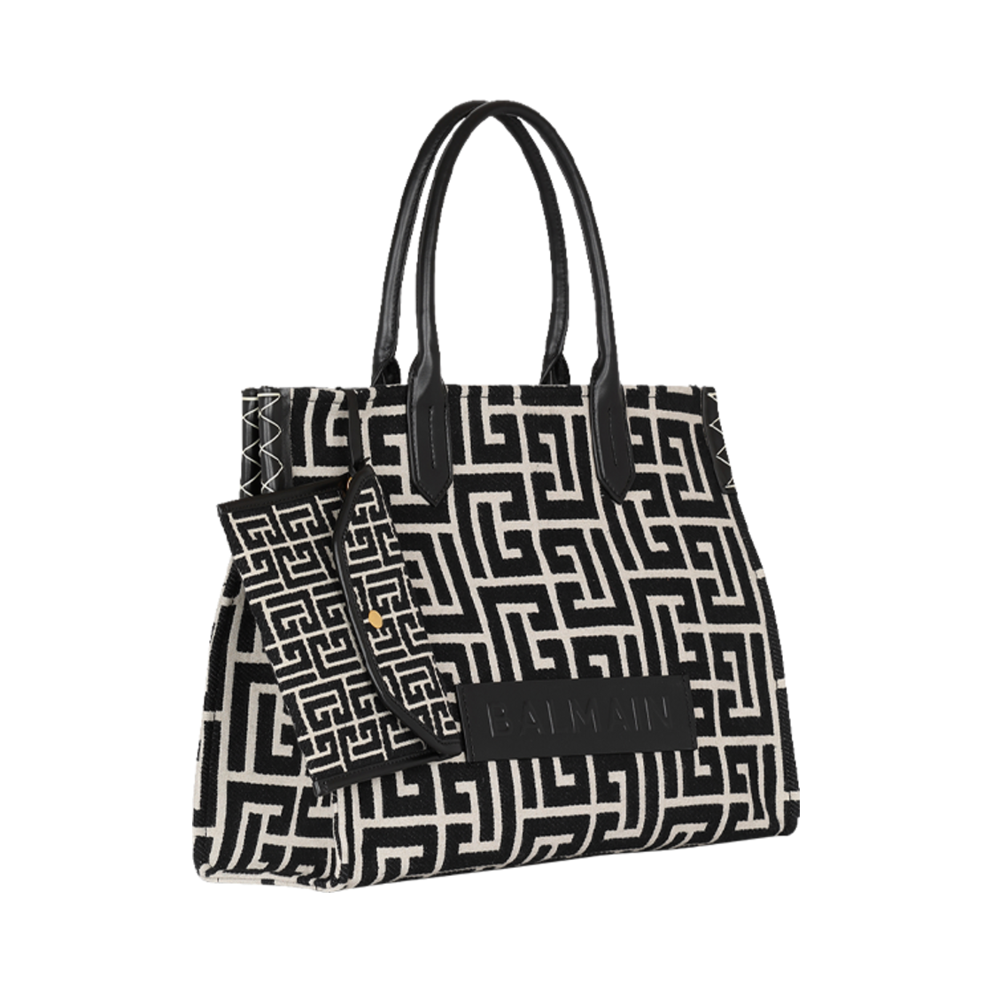Balmain B-Army Monogram Jacquard and Leather Tote Bag Black