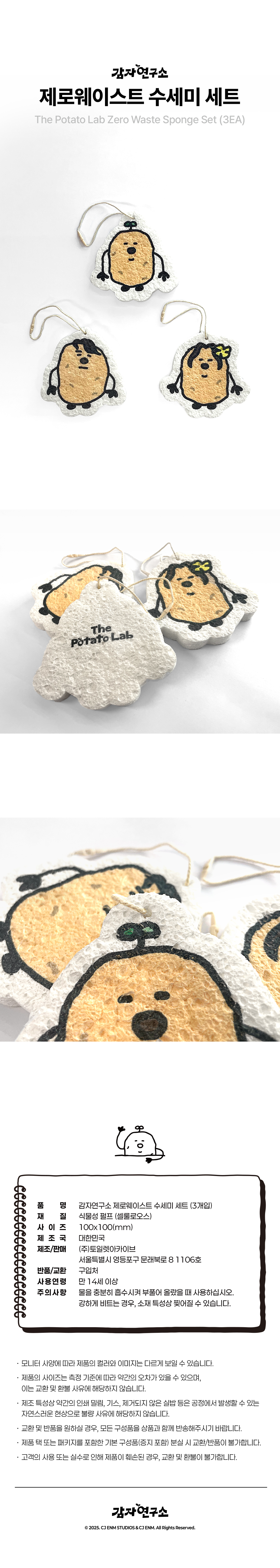 감자연구소 제로웨이스트 수세미 세트 (3개입)