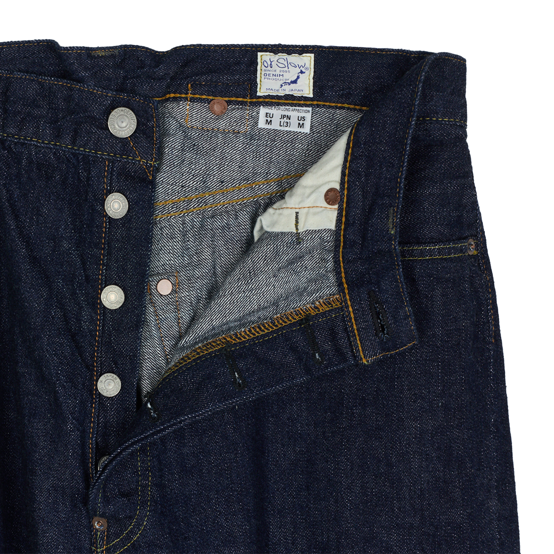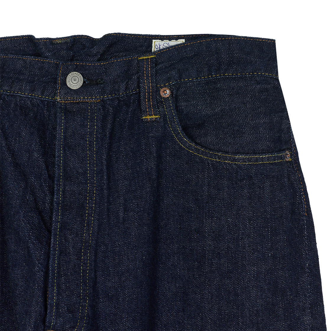 짙은 컬러의 워싱과 대비되는 노란 스티치가 매력적인 오어슬로우의 그랜드 대드 핏 데님 팬츠 원 워시입니다. - 면 100% - 셀비지 동전 포켓이 있는 전면 포켓 2개 & 백 포켓 2개 - 히든 리벳 및 가죽 패치 디테일 - 버튼 클로저
