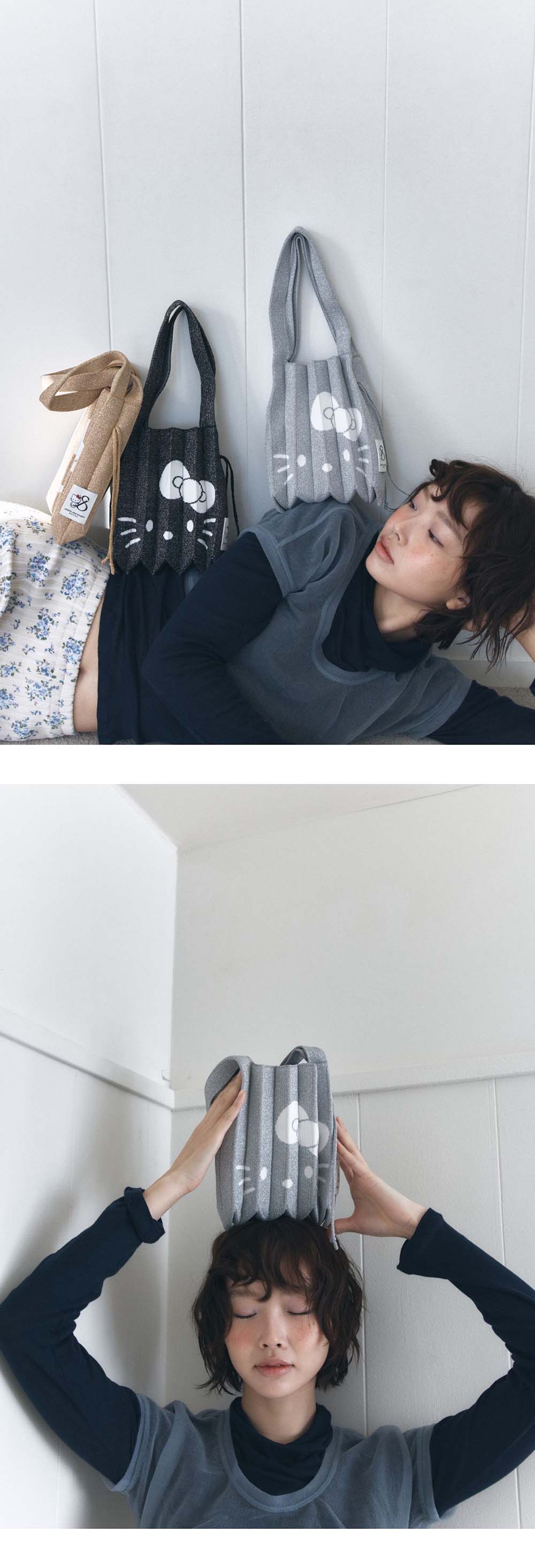 조셉앤스테이시 럭키 플리츠 니트 스몰 스태리 헬로키티 플래티넘