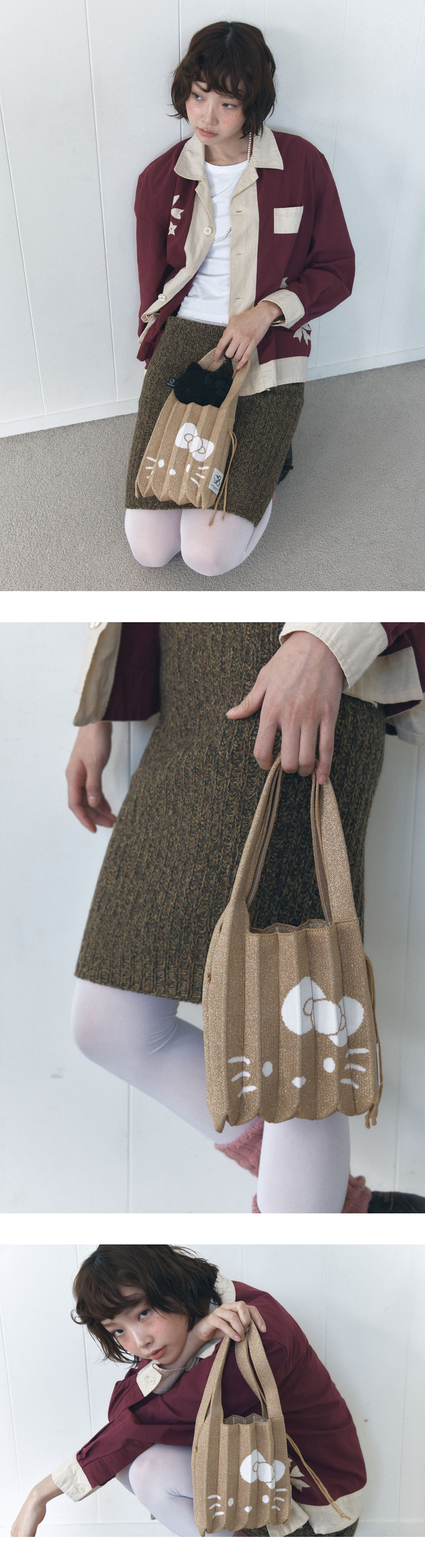 조셉앤스테이시 럭키 플리츠 니트 스몰 스태리 헬로키티 골드