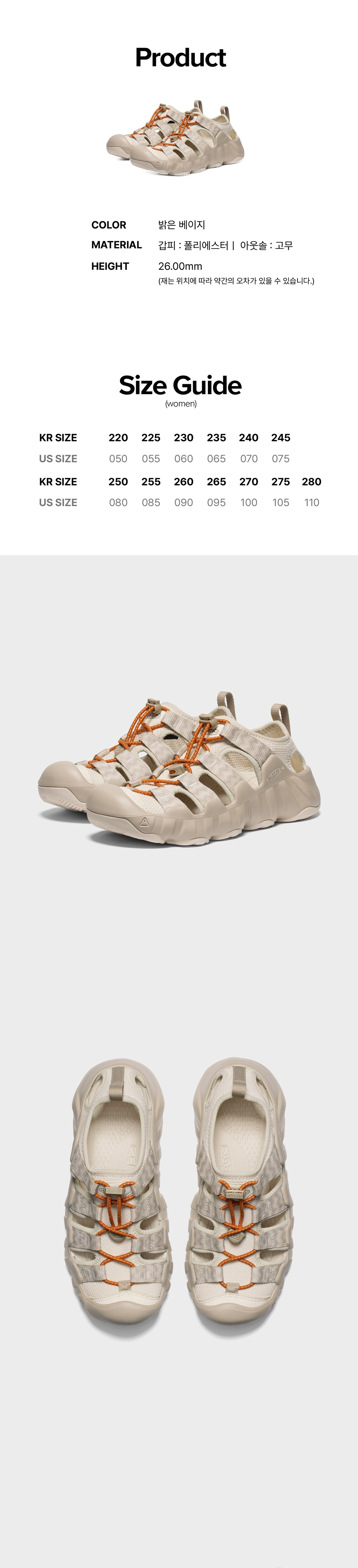 킨 하이퍼포트 H2 밝은 베이지 여성 샌들
