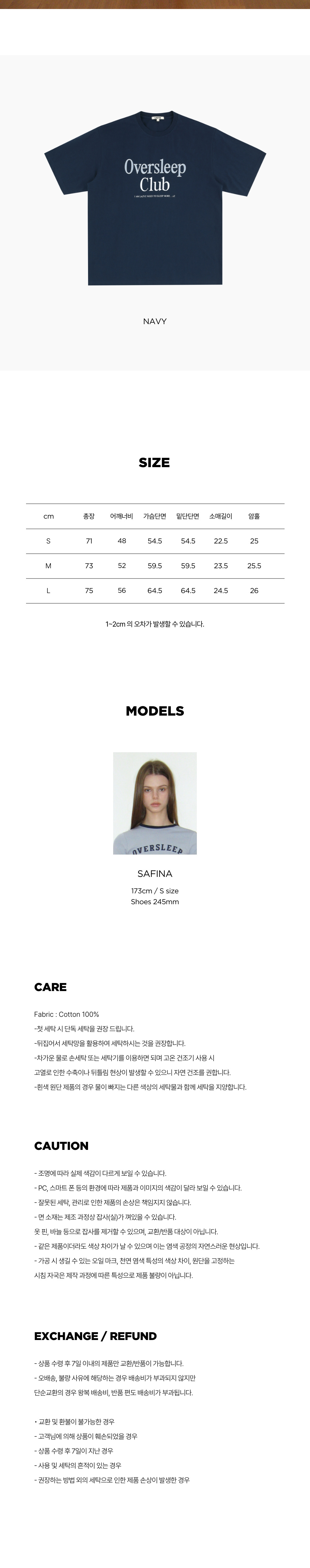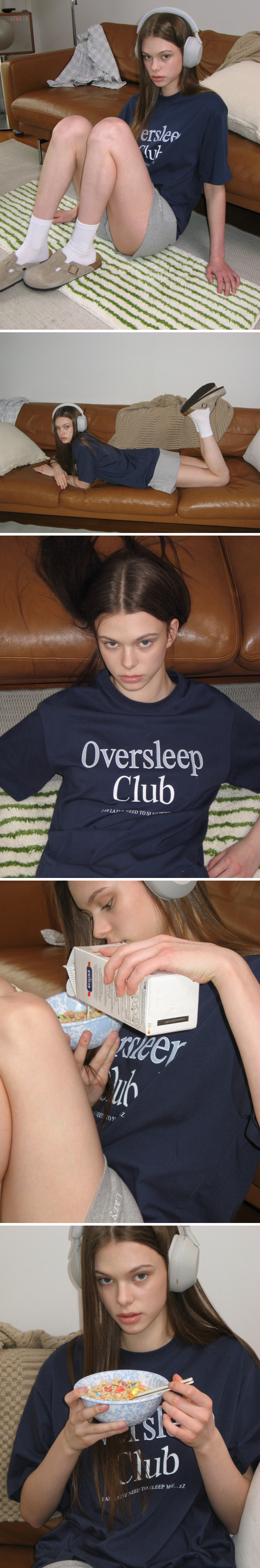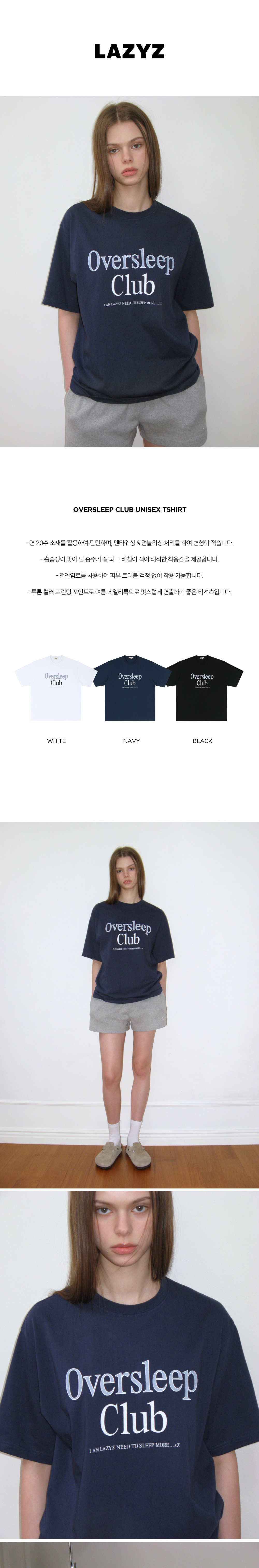 레이지지 오버슬립클럽 유니섹스 티셔츠 네이비