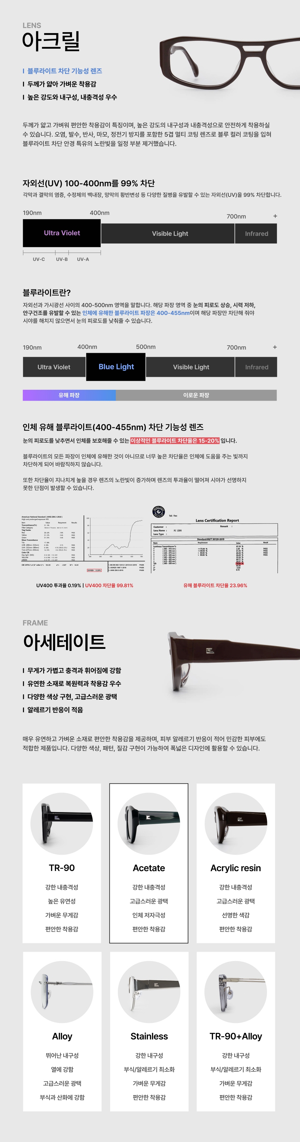 도수가 없는 아이웨어(안경테/선글라스 포함)를 취급하고 있습니다. 도수 렌즈가 필요하신 분들은 제품 수령 후 가까운 안경점 방문 부탁 드립니다. 남녀 공용으로 제작되었지만 개개인 얼굴형에 따라 피팅감은 개인차가 있어, 상품 수령 후 가까운 안경점 방문하시어 얼굴형에 맞게 피팅 후 착용 권장 드립니다.