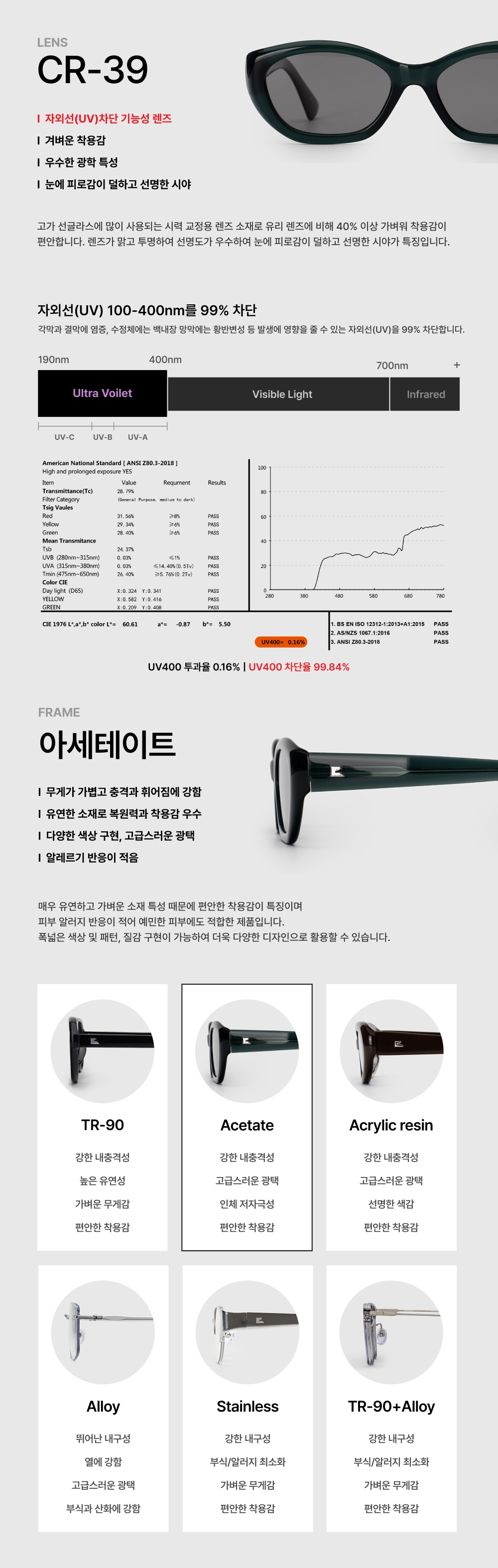 도수가 없는 아이웨어(안경테/선글라스 포함)를 취급하고 있습니다. 도수 렌즈가 필요하신 분들은 제품 수령 후 가까운 안경점 방문 부탁 드립니다. 남녀 공용으로 제작되었지만 개개인 얼굴형에 따라 피팅감은 개인차가 있어, 상품 수령 후 가까운 안경점 방문하시어 얼굴형에 맞게 피팅 후 착용 권장 드립니다.