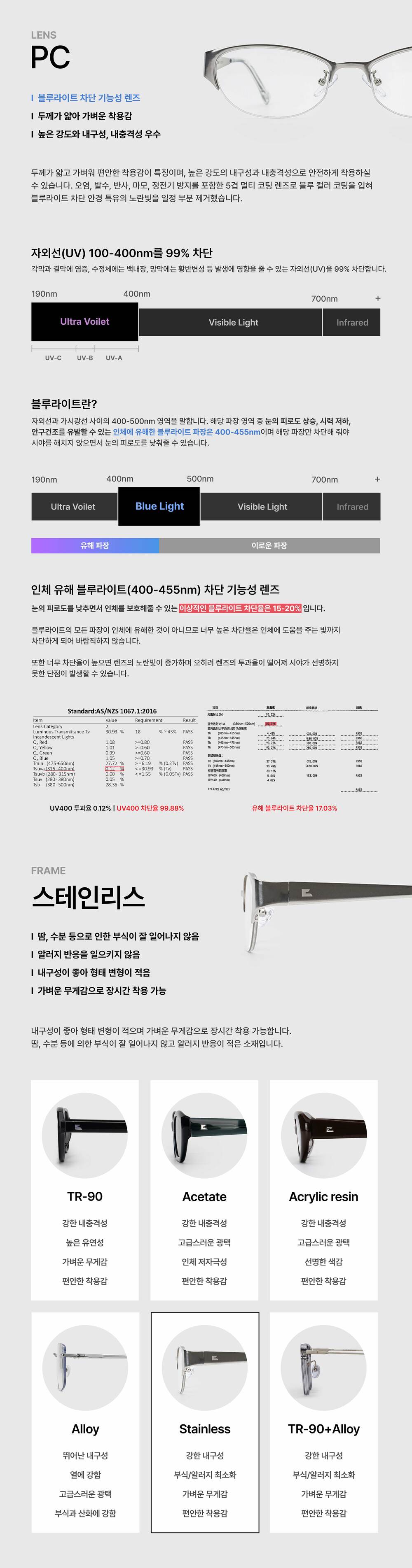 도수가 없는 아이웨어(안경테/선글라스 포함)를 취급하고 있습니다. 도수 렌즈가 필요하신 분들은 제품 수령 후 가까운 안경점 방문 부탁 드립니다. 남녀 공용으로 제작되었지만 개개인 얼굴형에 따라 피팅감은 개인차가 있어, 상품 수령 후 가까운 안경점 방문하시어 얼굴형에 맞게 피팅 후 착용 권장 드립니다.