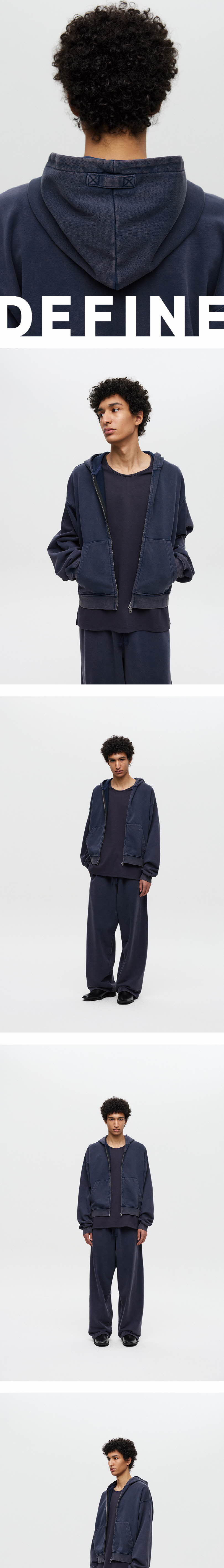 디파인 페이드 워싱 크롭 후드집업 네이비