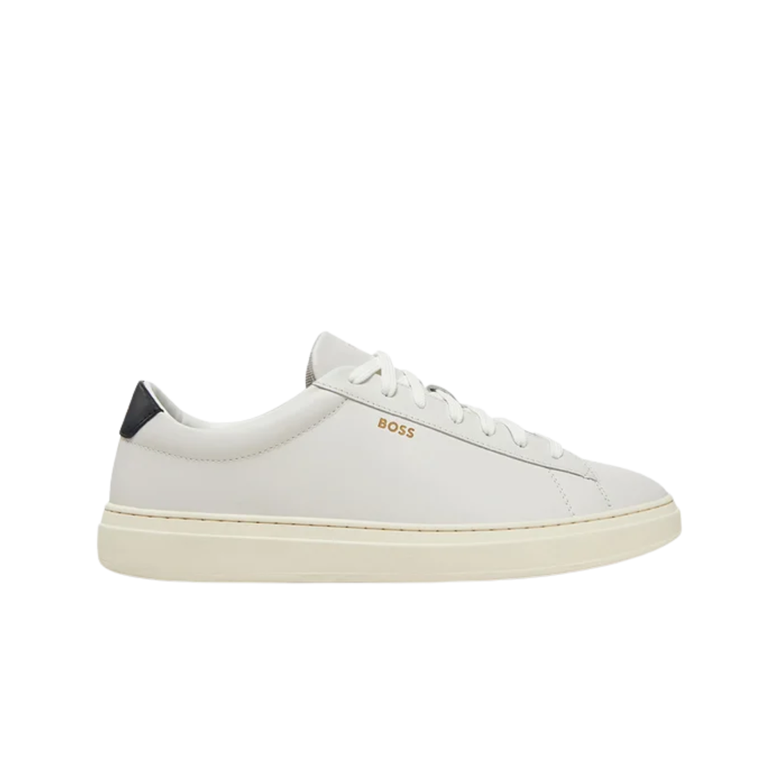 휴고 보스 로고 디테일 폴리쉬드 레더 레이스업 트레이너 화이트