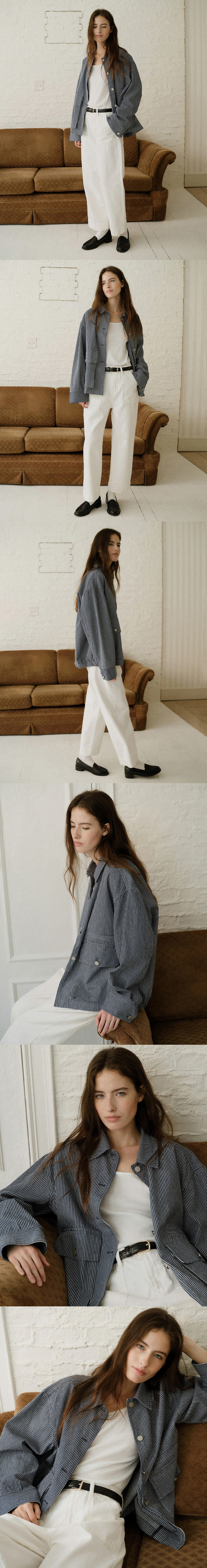 르닐 헨슨 워싱 자켓 스트라이프 네이비