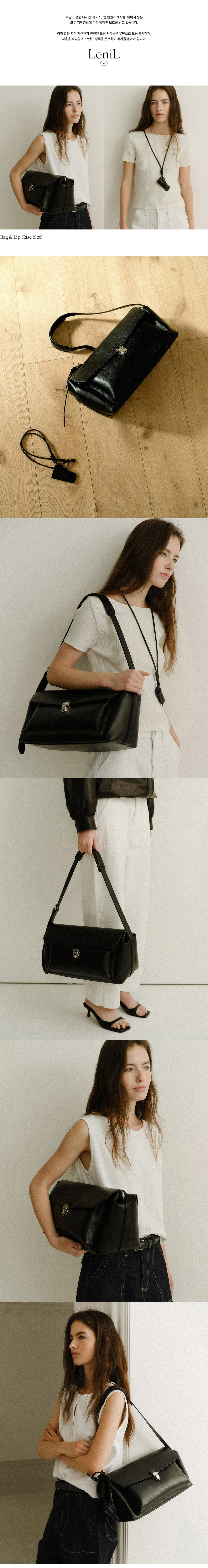 르닐 90s 베지터블 레더 카메라 백 & 립케이스 세트 블랙