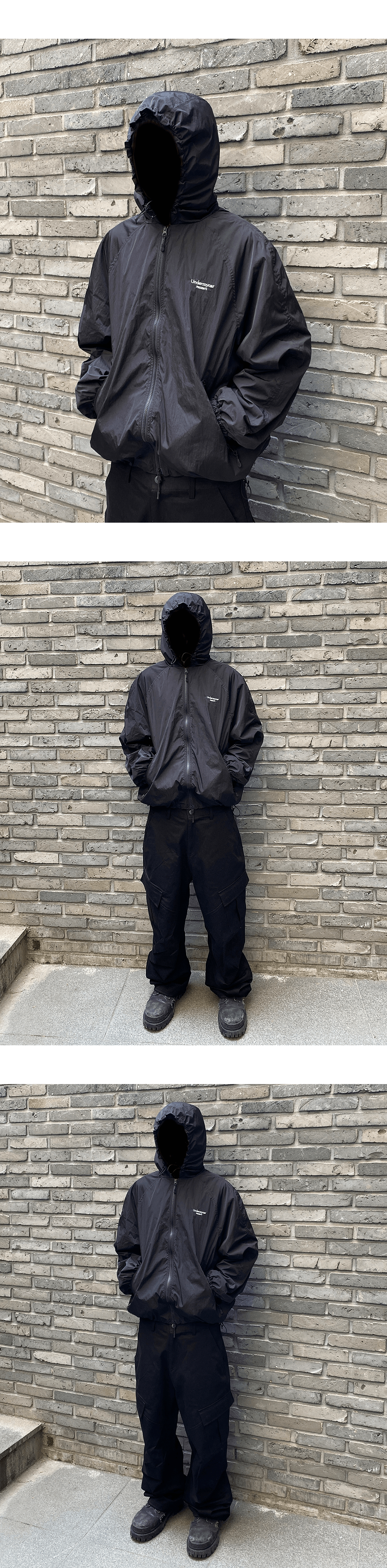 언더마이카 무.105 안티 Fxxking 로고 플레이 레귤러 핏 나일론 윈드브레이커 블랙