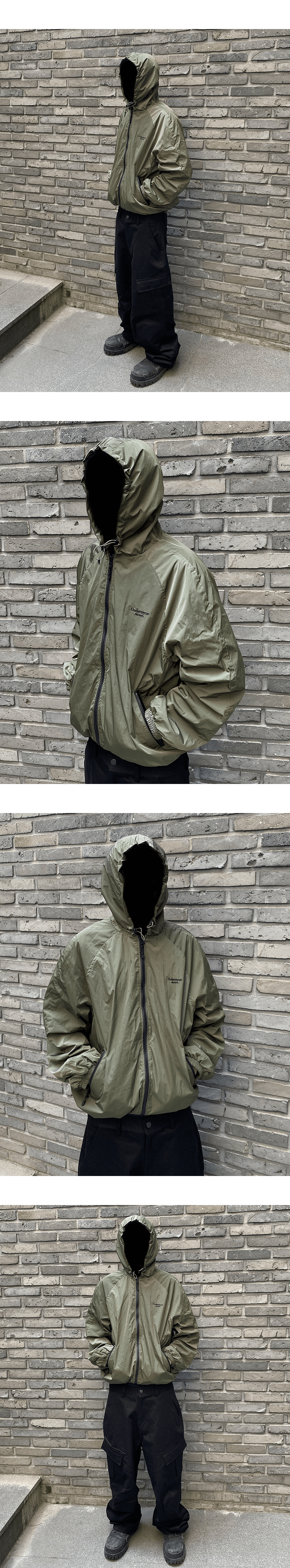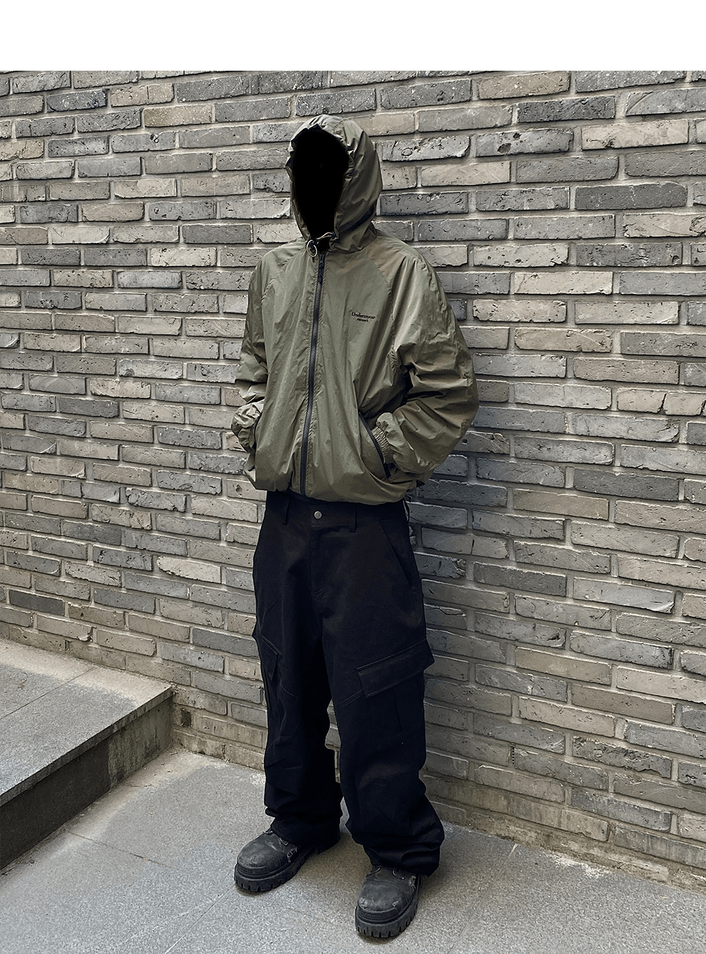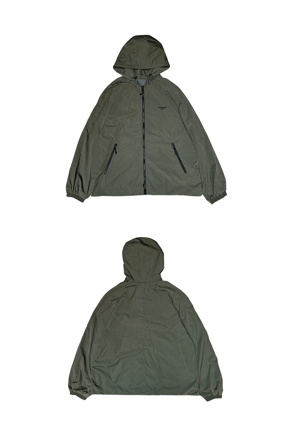 언더마이카 무.105 안티 Fxxking 로고 플레이 레귤러 핏 나일론 윈드브레이커 카키