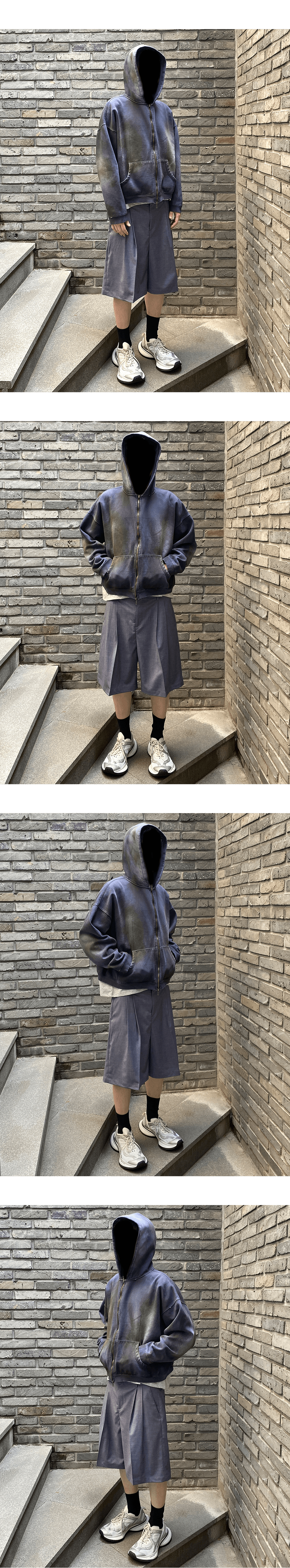 언더마이카 무.108 안티 Fxxking 로고 투 턱 와이드 하프 슬랙스 블루