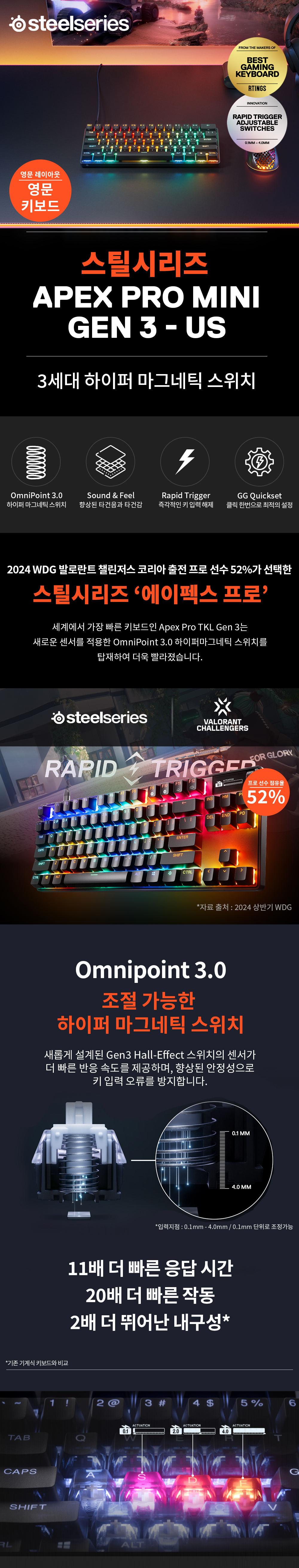 스틸시리즈 Apex Pro Mini Gen 3 - US 자석축 기계식 게이밍 키보드