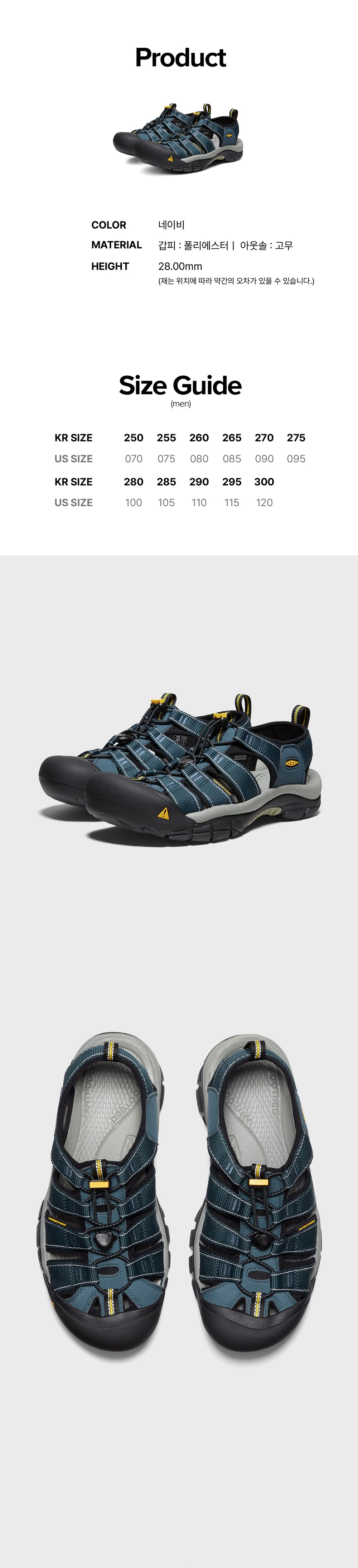 킨 뉴포트 H2 네이비 남성 샌들