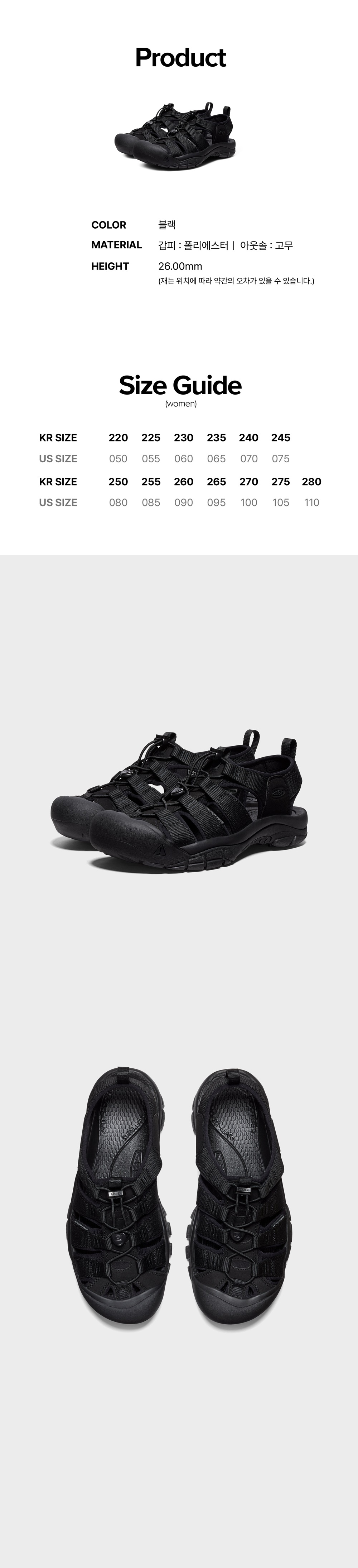 킨 뉴포트 H2 블랙 여성 샌들