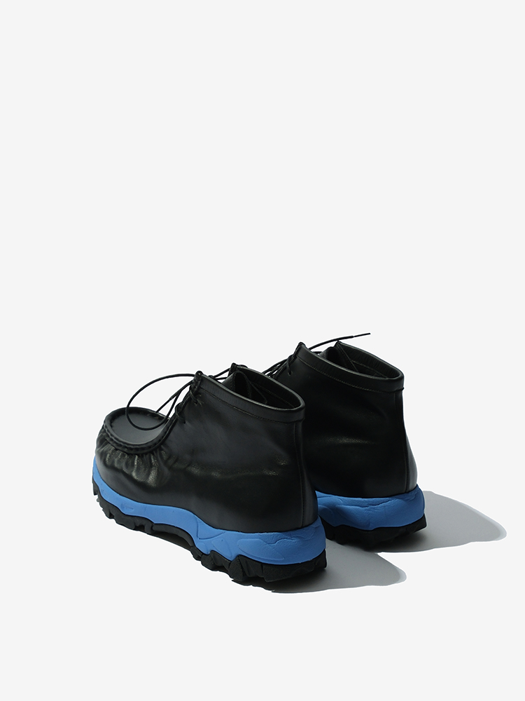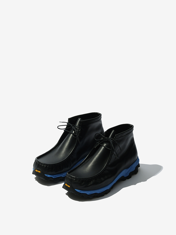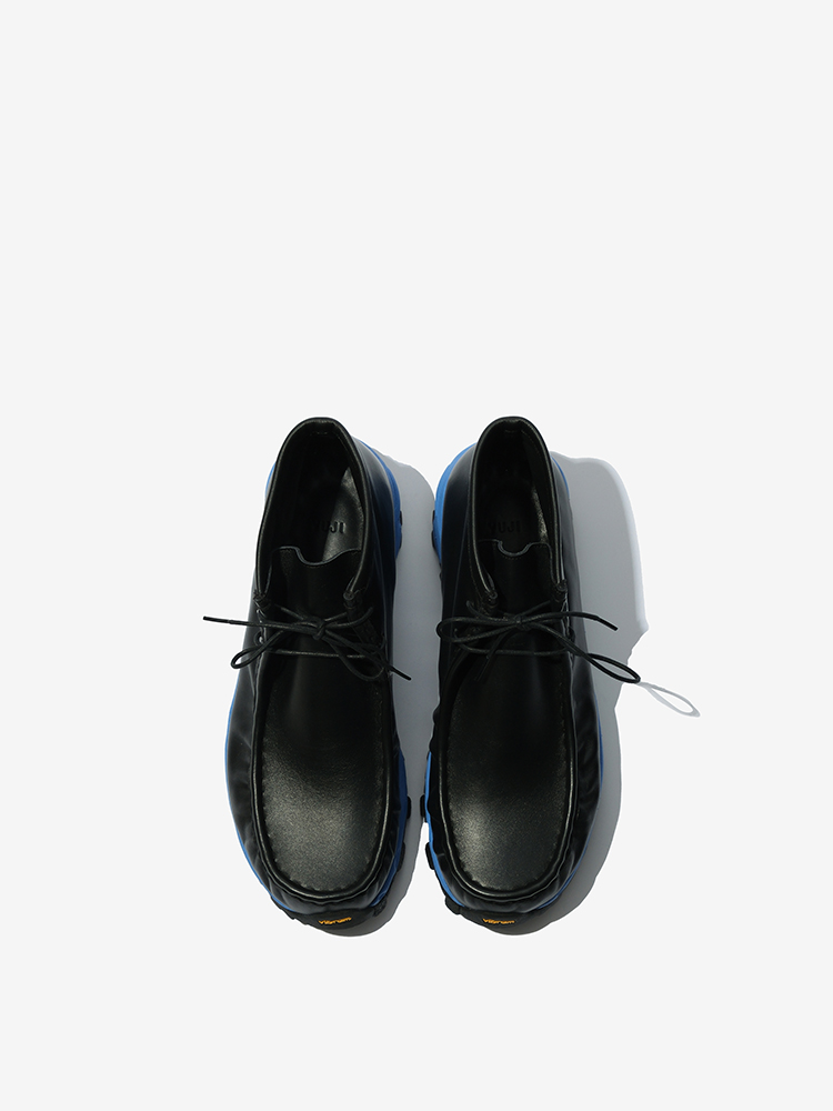 블루 비브람창으로 컬러 포인트를 주었습니다. 핸드메이드로 주름을 작업하여 디테일한 멋을 극대화하였습니다. 사계절에 구애받지않는 비브람 왈라비 스니커즈입니다.