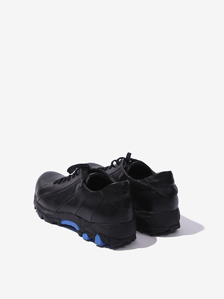 블루 비브람창으로 컬러포인트를 주었습니다. 패턴을 세분화하여 디테일한 기법을 주어 독창적이면서도 어디서도 볼수 없는 유지맨즈의 비브람 쿠푸어 스니커즈입니다.