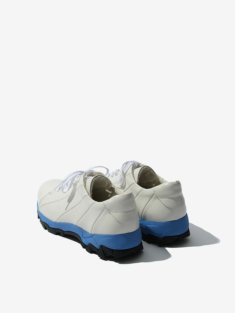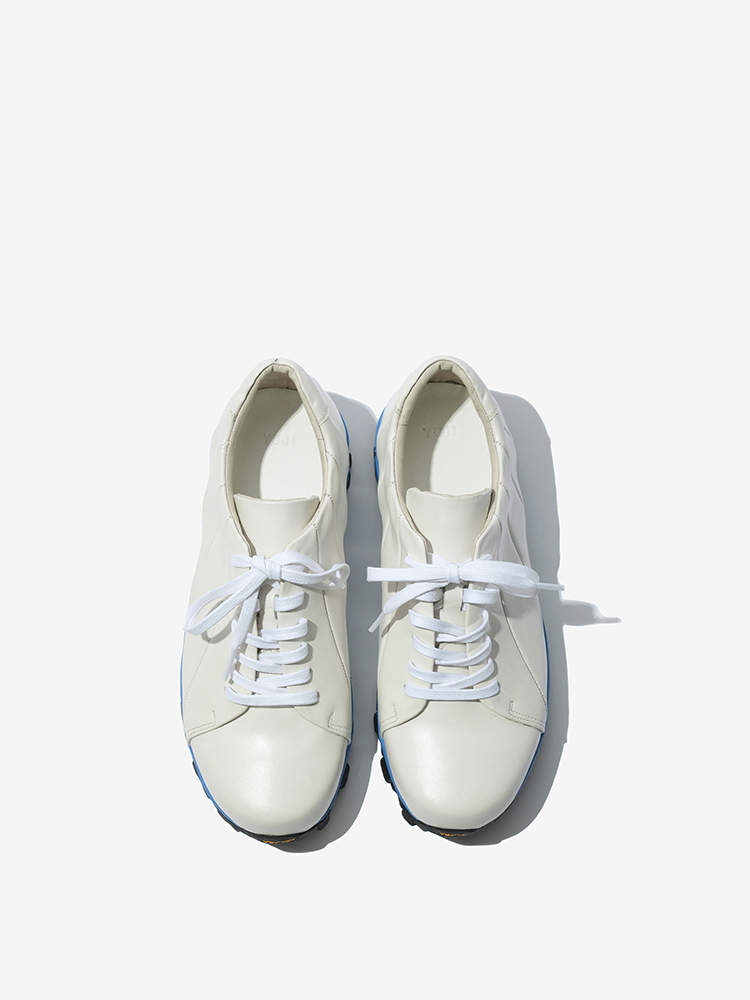 블루 비브람창으로 컬러포인트를 주었습니다. 패턴을 세분화하여 디테일한 기법을 주어 독창적이면서도 어디서도 볼수 없는 유지맨즈의 비브람 쿠푸어 스니커즈입니다.