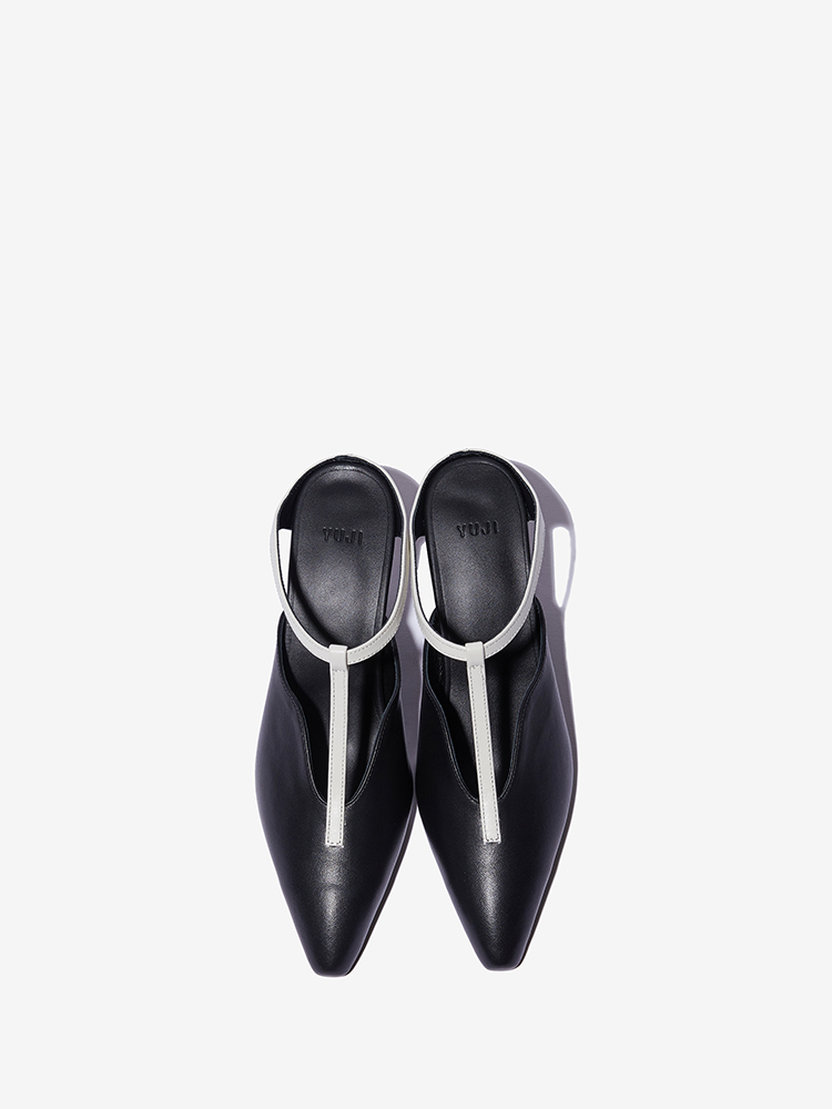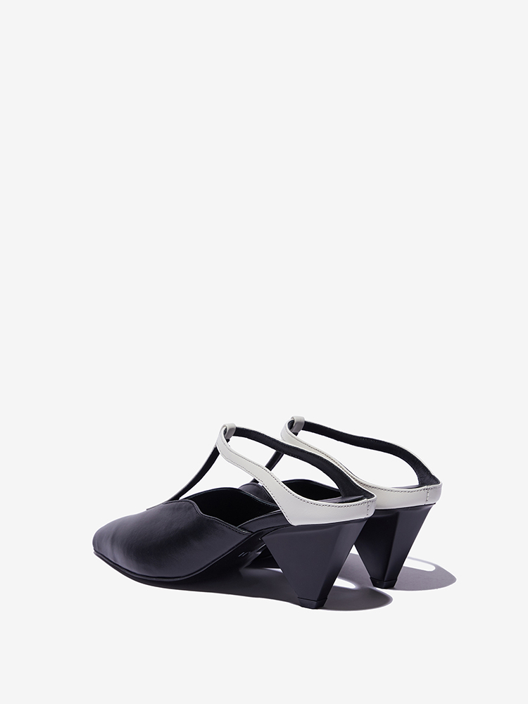 우아한 앞코 라스트와 티슬링백의 스트랩 디자인이 모던하면서도 우아한 느낌을 줍니다. 삼각형 모양의 독창적인 굽의 디자인으로 어느 각도에서 봐도 유니크함이 돋보이는 티산느 뮬 입니다.