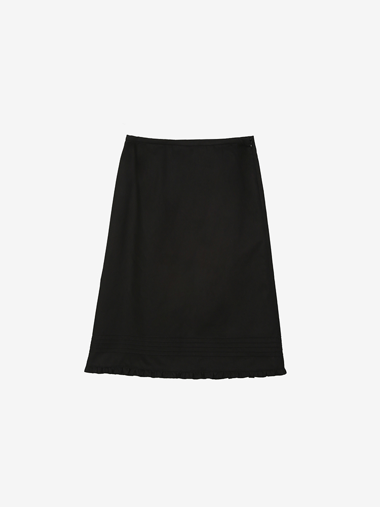 깨끗하고 퓨어한 텍스처의 원단의 스커트로 디자인하였고 소녀와 여성의 경계가 공존하는 매력적인 스커트입니다. 러플 디테일과 미디 기장까지 오는 에이라인 스커트로 날씬하고 이지한 스커트입니다. 워크아웃 자켓과 믹스 매치 룩으로도 연출이 가능합니다. SIZE GUIDE S SIZE / 허리 72.4cm 힙 96.2cm 밑단 113cm 총기장 66cm M SIZE / 허리 77.5cm 힙 101cm 밑단 118cm 총기장 66.6cm 치수는 재는 위치에 따라 1-3cm 차이 생길 수 있습니다. 모델 착용 사이즈 : S SIZE