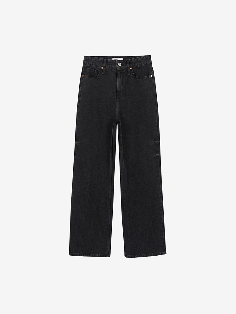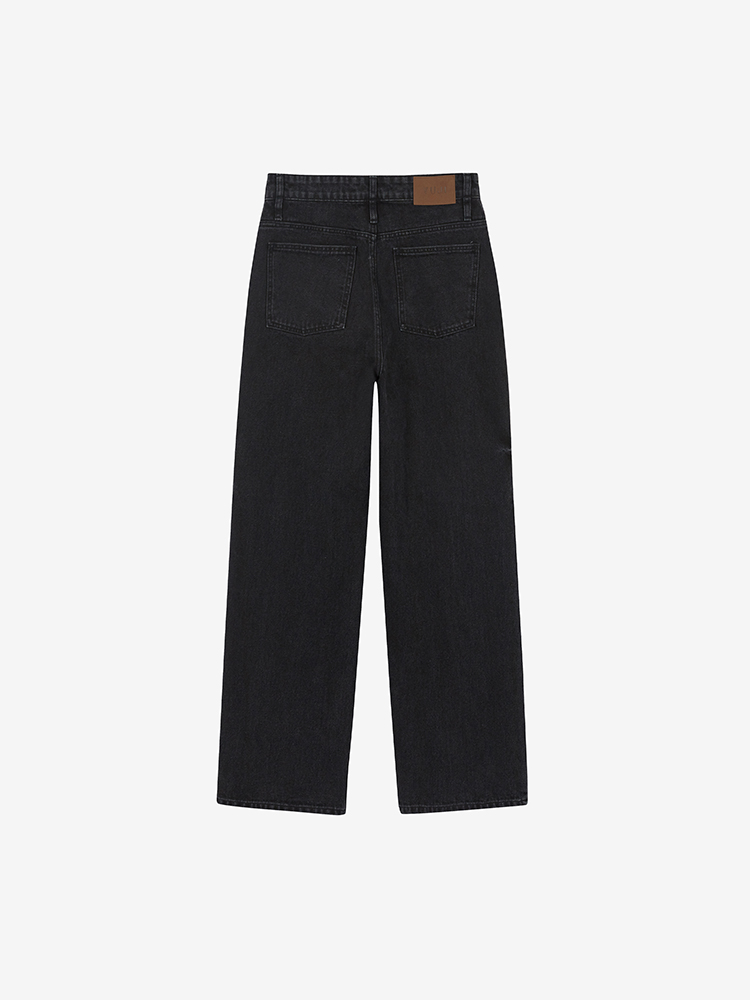 유지 빈티지 워싱 스트레이트 핏 데님 팬츠 유니섹스 블랙