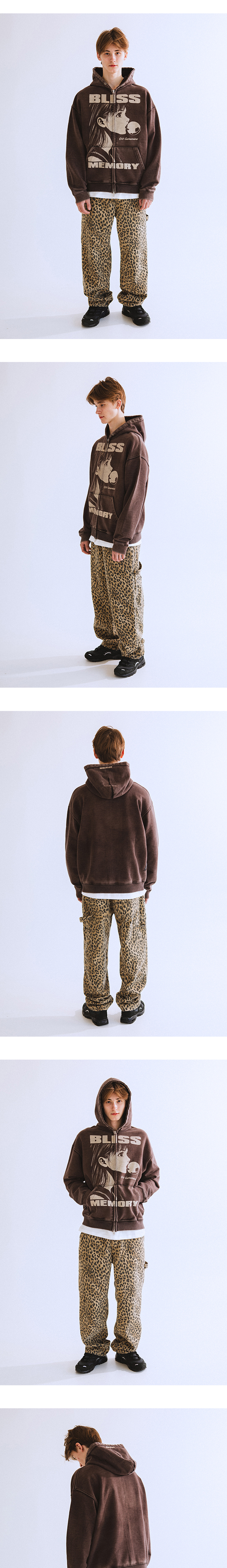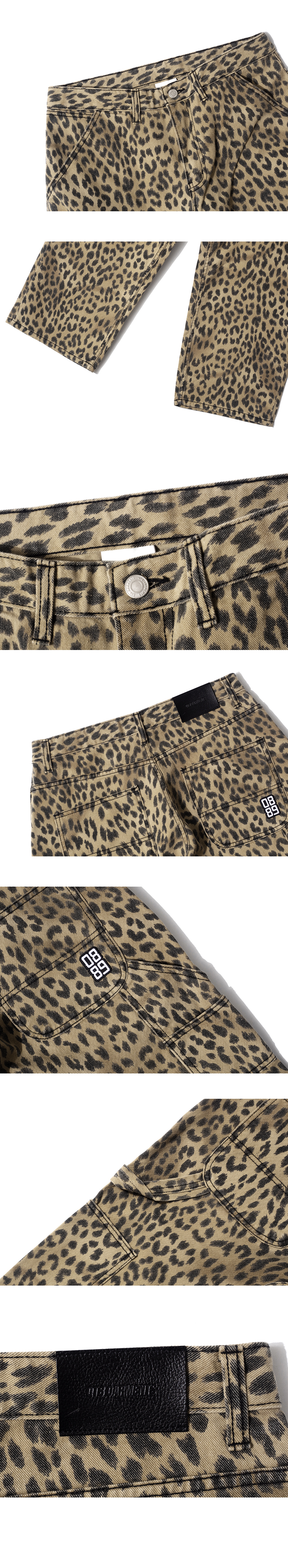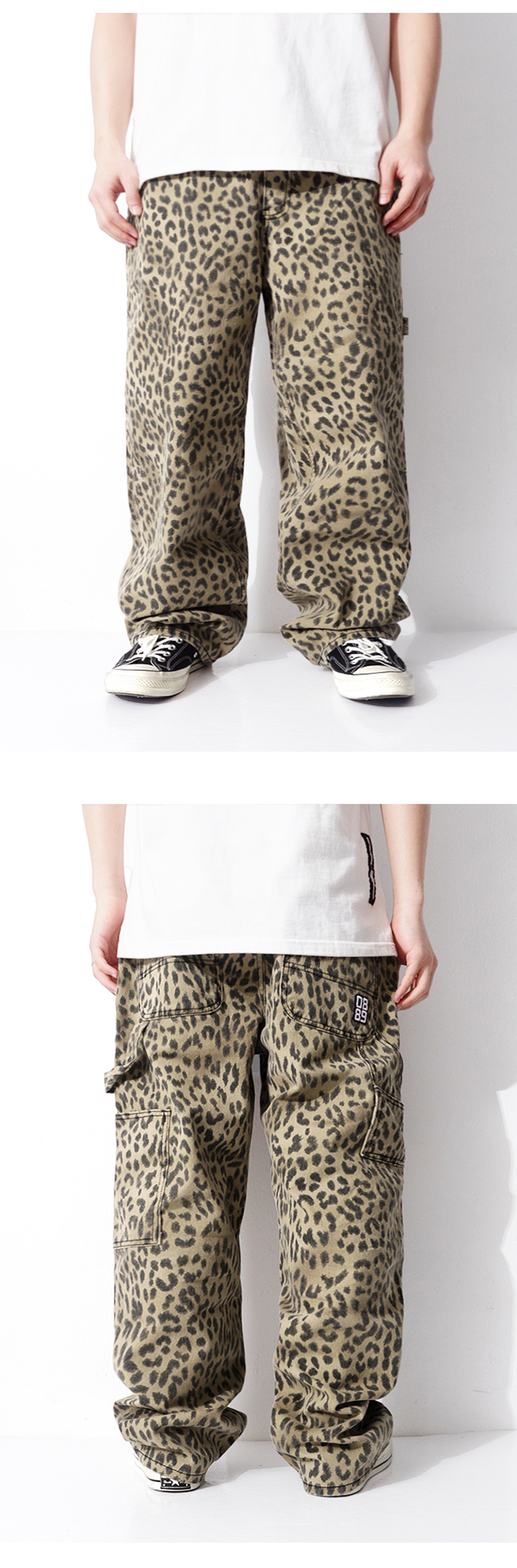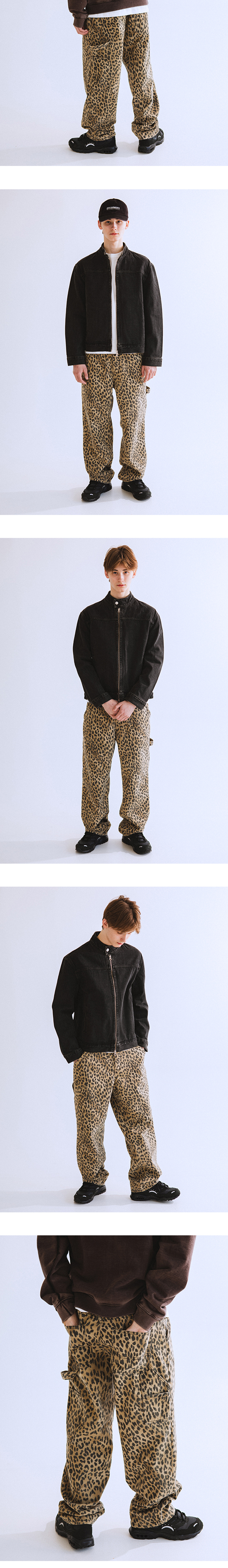 빈티지한 컬러감의 레오파드 패턴 원단을 사용한 카펜터 팬츠입니다. 밀도있는 10s 트윌 원단으로 내구성이 뛰어난 원단을 사용하였으며, 바이오 워싱 과정을 거쳐 원단의 촉감과 빈티지한 질감을 표현한 동시에 수축현상을 방지 하였습니다.