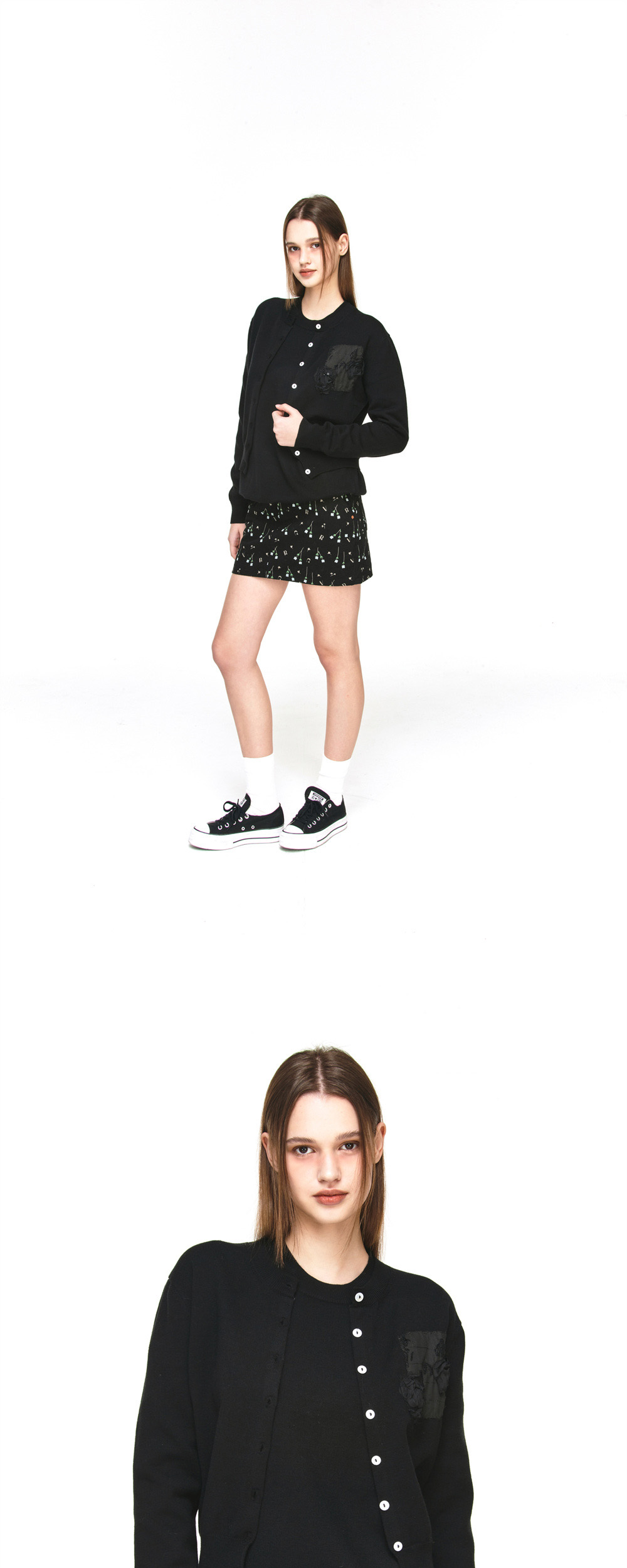 더그레이티스트 크롭 장미 패치 가디건 블랙